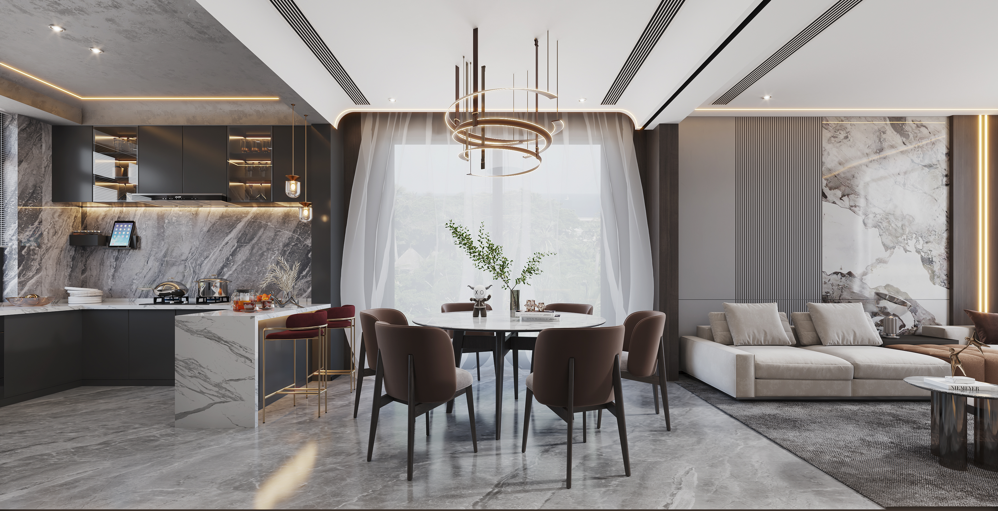 想要有書房,卻沒有獨立空間的房子,可以采用書柜加餐邊柜的一體化設(shè)計,這樣的設(shè)計適用于餐廳面積比較大的房子,有條件的話,餐桌可以靠窗進行擺放,在這個區(qū)域不僅僅可以用餐,還可以喝茶、辦公和看書。